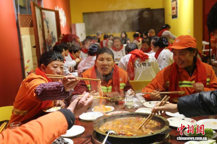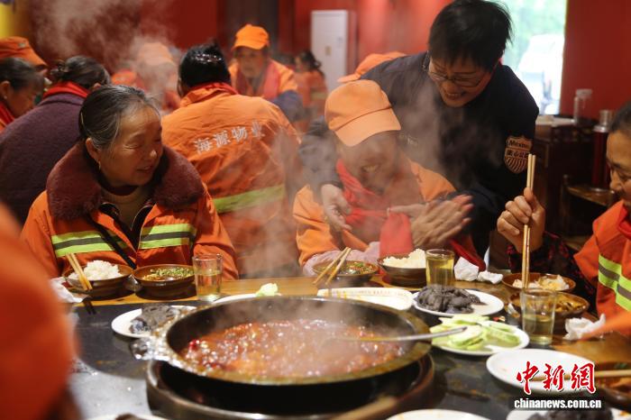 火锅暖胃更暖心 重庆一景区连续多年宴请“城市美容师”